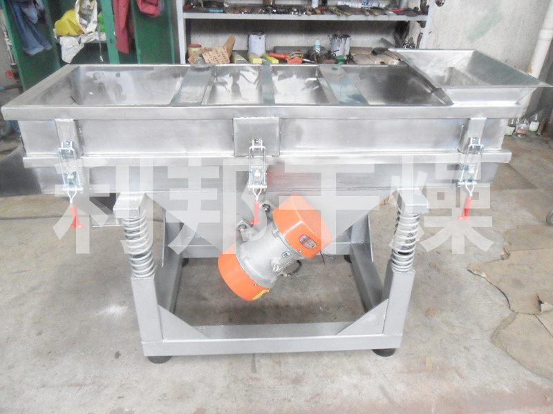本機上部采用快拆式手柄,把整機連成一個整體,上蓋全密封、有效防止物料在過篩時由于振動而產生粉塵飛揚。篩體下部安裝振動電機,有效保證了物料的結構緊湊,下部采用彈簧減振,使整機在平穩狀態下工作。下面底座采用可調式,可調節正在過篩時的篩面傾斜角度,根據物料特性以取得 佳過篩效果。